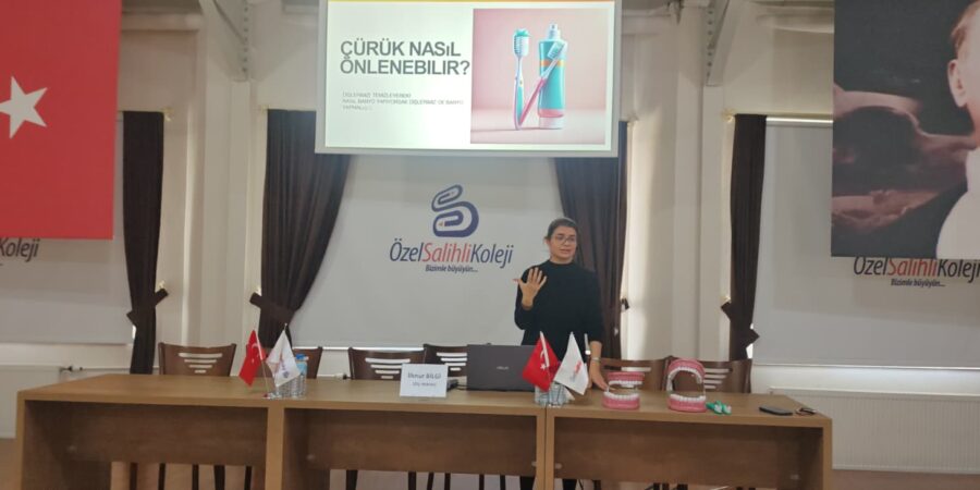 Özel Salihli Koleji’nde 2. sınıf öğrencilerine yönelik “Ağız ve Diş Sağlığı” konulu bilgilendirme semineri gerçekleştirildi. Seminere, okul velilerimizden Diş Hekimi İlknur Bilgi konuşmacı olarak katıldı.